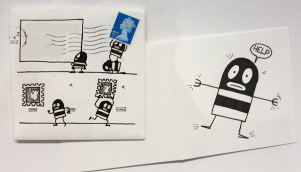 Some of the photos do not do the envelopes any favours and I apologise for the clumsy attempts at smudging any private addresses. Not all of the artists are known as it was open to 1st Year students and any friends and family who wished to have a go!